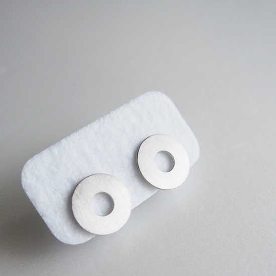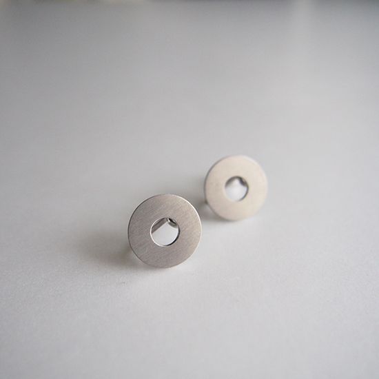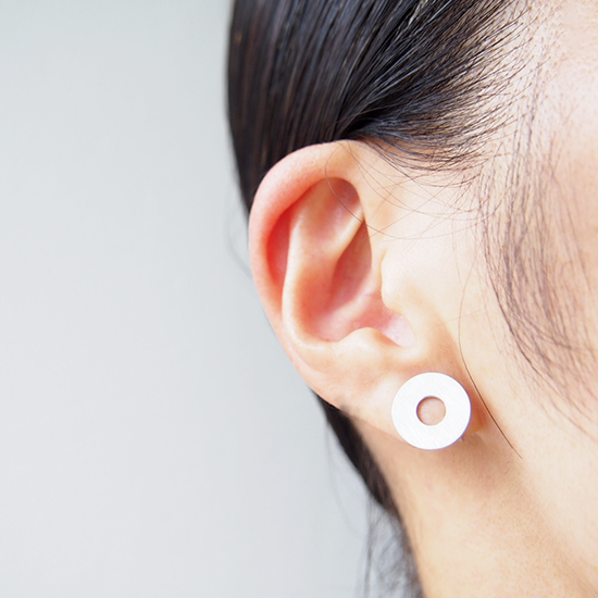 厚さ1mmのシンプルな丸く、中央があいたディスク型のプレートイヤリング。