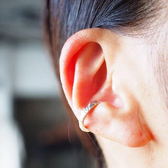 イヤーカフは耳の薄い部分から差し込み、するりと抜けないよう耳の穴に引っかかるように装着すると