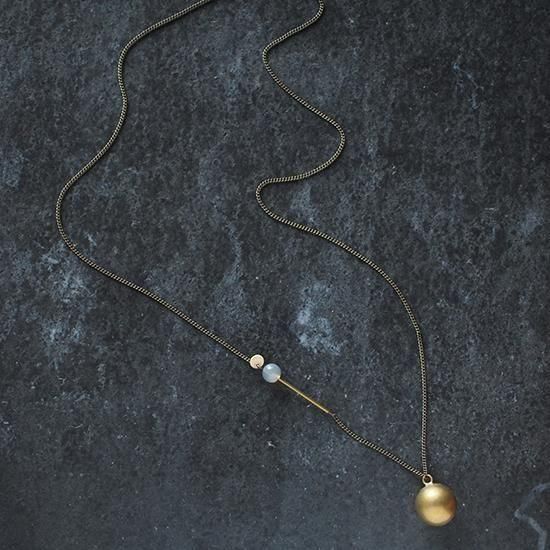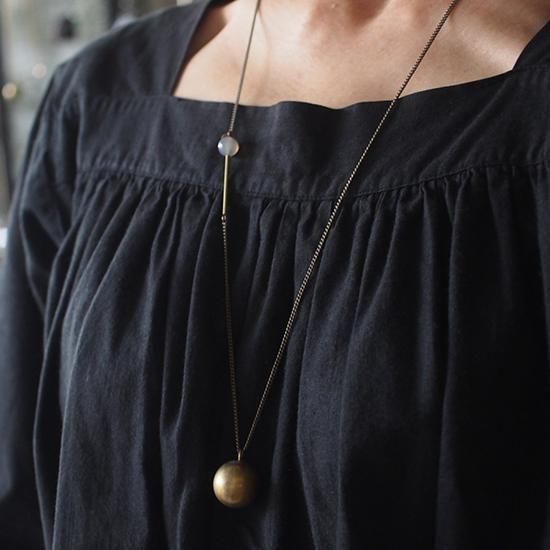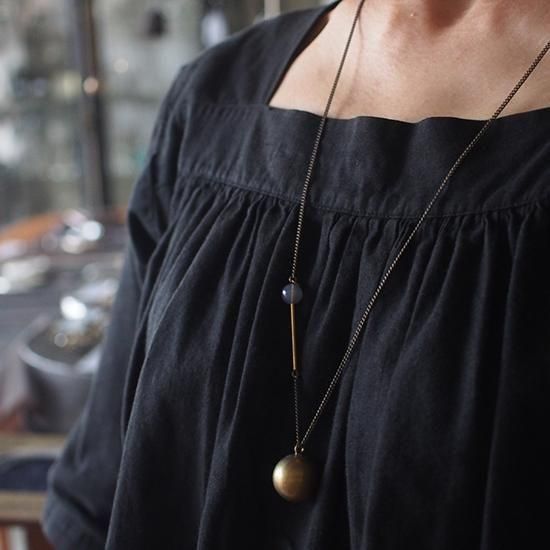金具のつかない、長めのチェーンなので、頭からすっぽりと被って身につけていただくネックレスです。ヒーリングボールが自由に動きますので、好きな位置で正面に持ってきて使っていただけます。お洋服に合わせて天然石とバーをどこに配置したいか、あれこれ楽しんでくださいね。