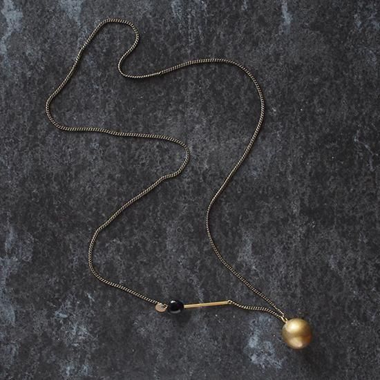 金具のつかない、長めのチェーンなので、頭からすっぽりと被って身につけていただくネックレスです。ヒーリングボールが自由に動きますので、好きな位置で正面に持ってきて使っていただけます。お洋服に合わせて天然石とバーをどこに配置したいか、あれこれ楽しんでくださいね。