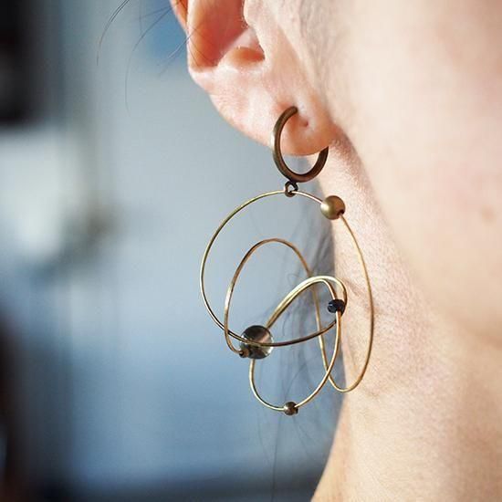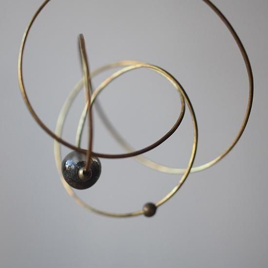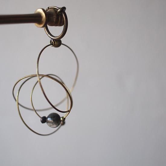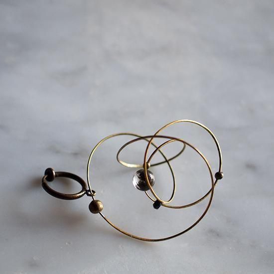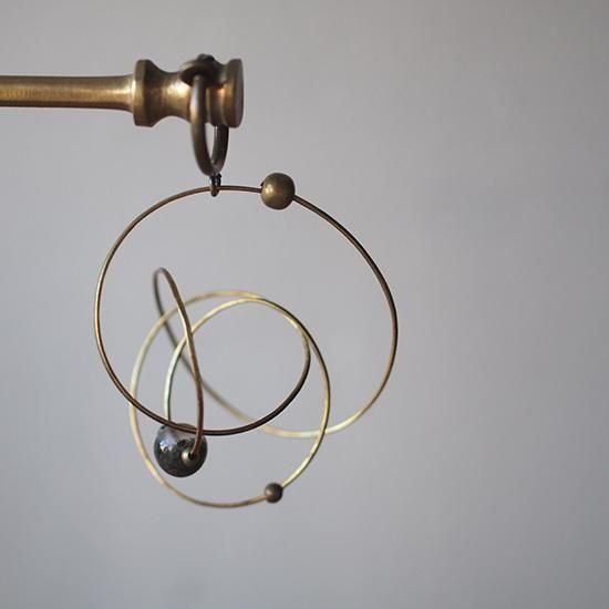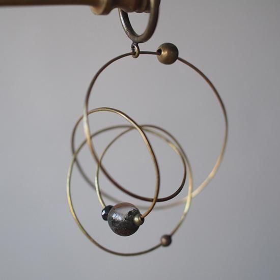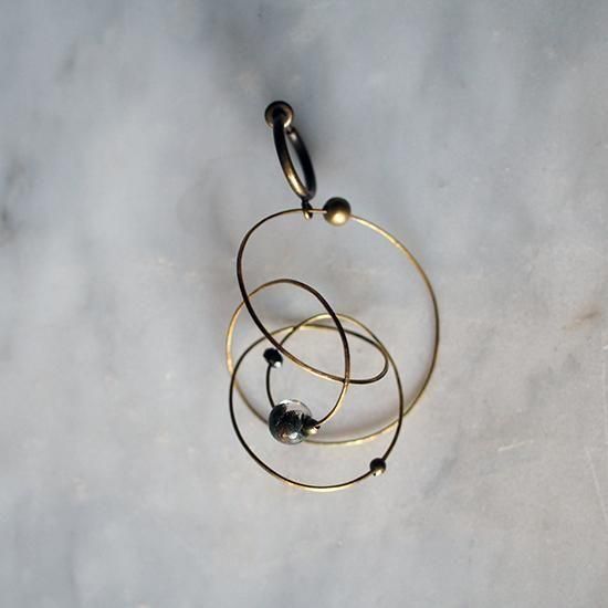 軌道の上を滑るように行き来するガーデンクォーツと小さなビーズが惑星のようです。離れたり近づいたり。