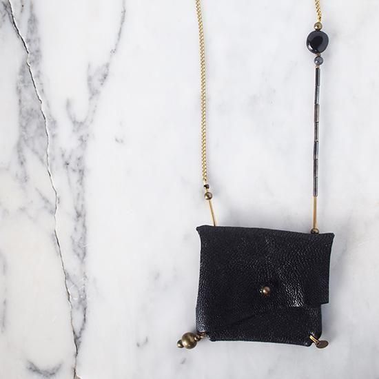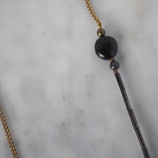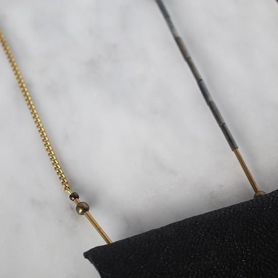 素材 : レザー、真鍮、ブラックトルマリン、ヴィンテージビーズ